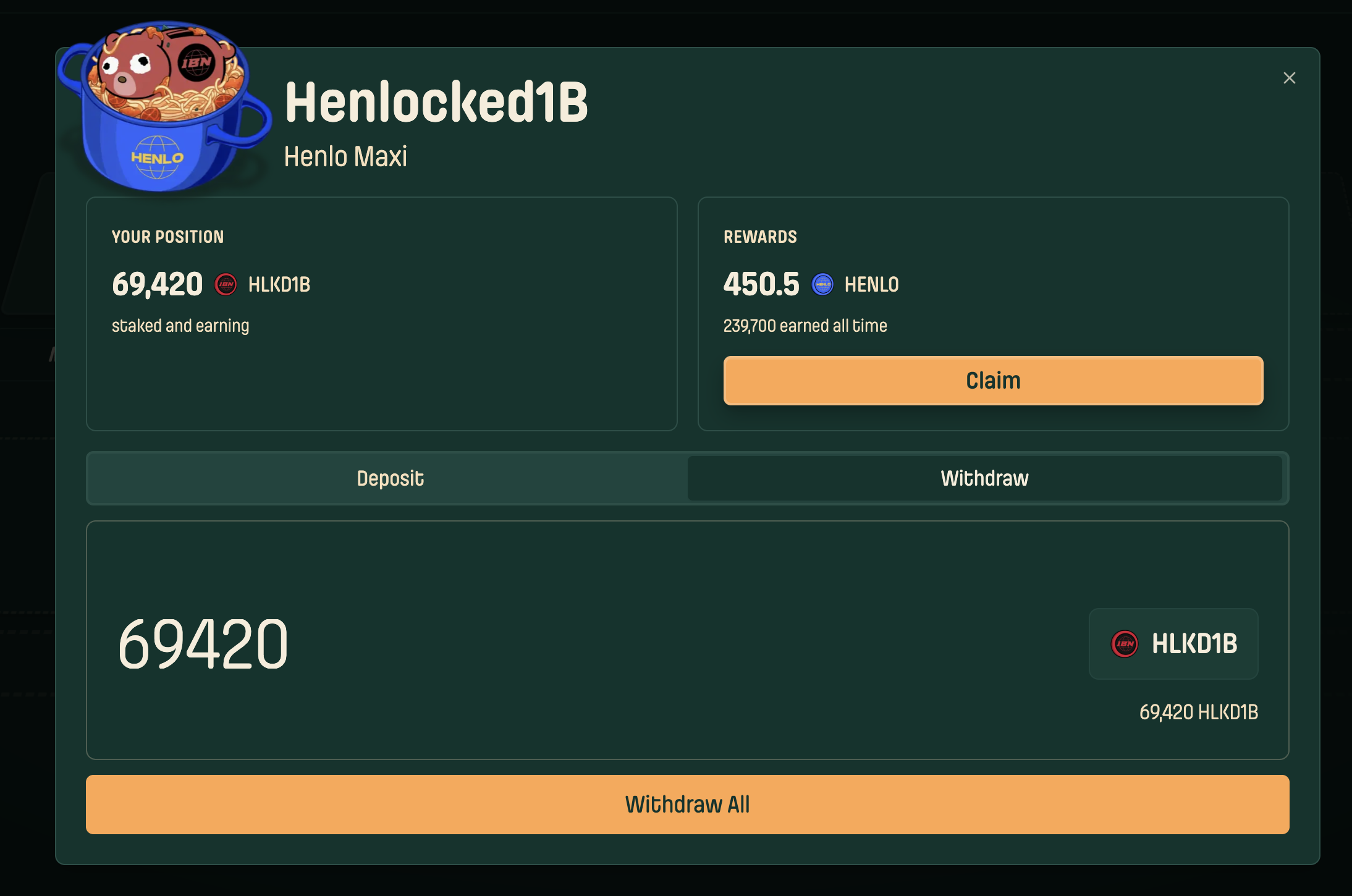 Withdraw Tab Withdraw Your Position At any point, you are able to exit your entire position into your desired token of choice: Choose token to receive One-click withdrawal